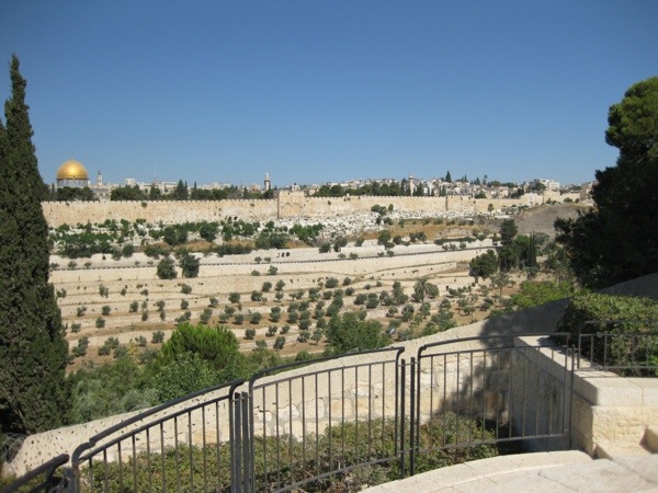 I cleaned up and showered before leaving at 8:30 for the Mt. of Olives. Our first destination was the garden and church of Gethsemane at its foothills, commemorating the place where Jesus was apprehended at his betrayal and prayed in agony for his followers. It is important to remember that this, and many of the other overtly religious sites, may easily not be the exact location of the events that they commemorate. Instead, they are memorials, inexact locations. The desire to say that we are standing on the exact spot where this-and-this happened… is somewhat baffling to me in the first place. Do we worship stones and trees, or do we worship God through the power of our defining stories?